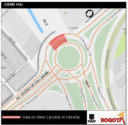 Con el fin de continuar con las actividades de retiro de autoportancia del Proyecto Construcción para La Adecuación al Sistema TransMilenio de la Troncal avenida Ciudad de Cali Tramo 1, en cumplimiento del Contrato IDU-1670-2020, la Secretaría Distrital de Movilidad (SDM) autorizó el cierre total de calzada en el costado occidental del anillo externo de la glorieta de la avenida Ciudad de Cali con avenida de Las Américas. (Ver mapa 1).