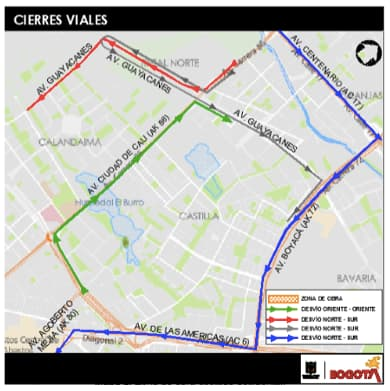 Cierres y desvíos en la avenida Ciudad de Cali y avenida de Las Américas durante junio de 2025
