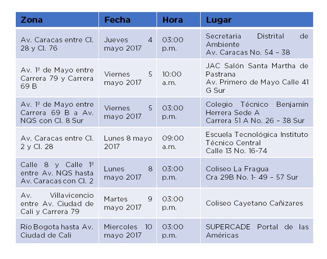 Las reuniones estarán acompañadas por representantes del Consorcio Metro BOG Systra – Ingetec S.A., el Instituto Distrital de la Participación y Acción Comunal (Idpac), el Instituto de Desarrollo Urbano (IDU), la Secretaria Distrital de Movilidad y las Alcaldías Locales.