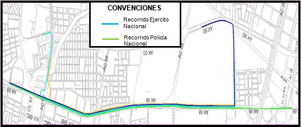 Recorrido del desfile: el desfile tendrá lugar a lo largo de la Av. Carrera 68 sobre la calzada central oriental, sentido Sur – Norte, entre la Av. Calle 53 y Av. Calle 80.