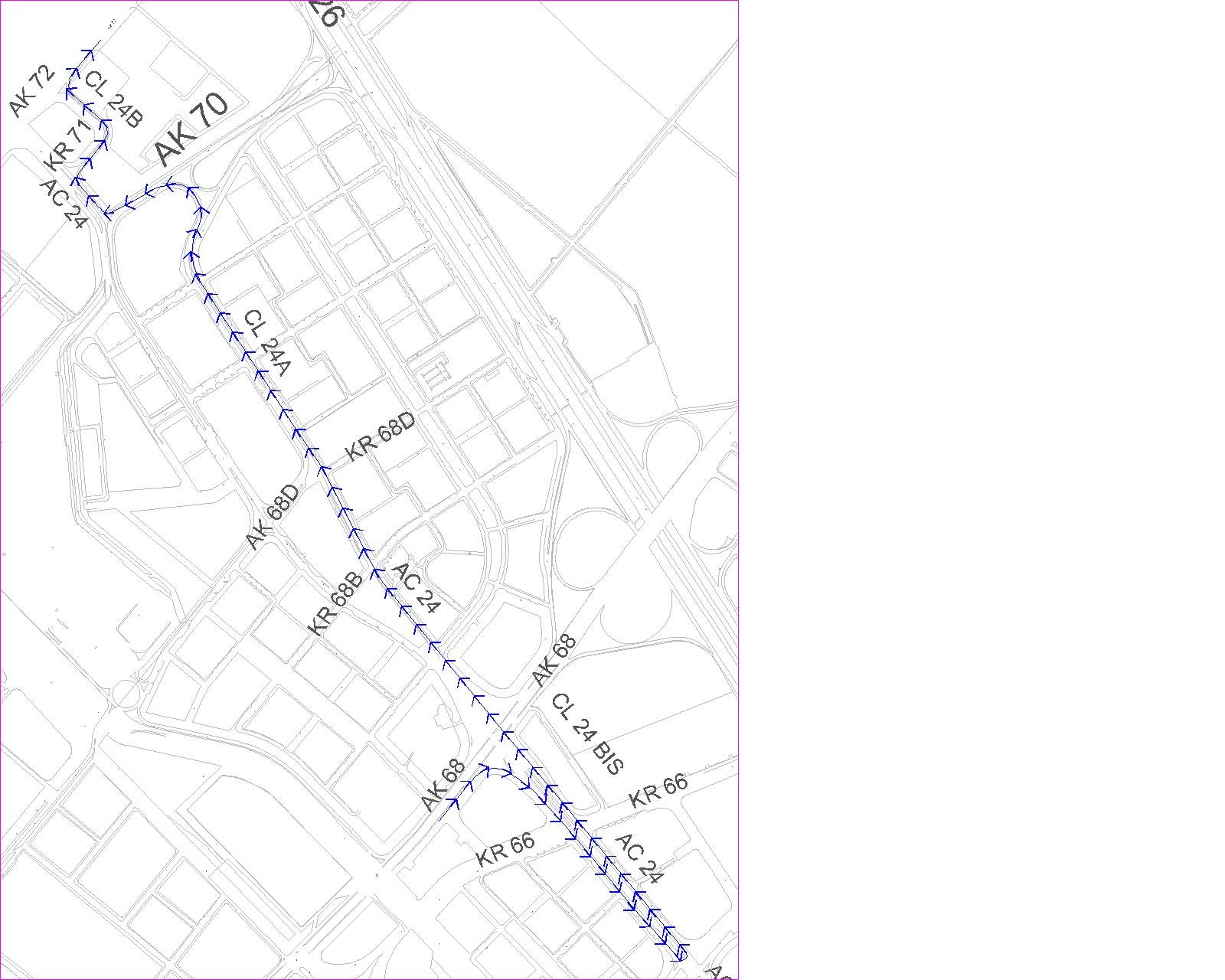 - Las rutas de transporte público y particular que circulan por la Av. Carrera 68 en sentido Sur-Norte, deberán tomar la Av. La Esperanza al Oriente – Av. Carrera 50 al Norte – Av. Calle 63 al Oriente – Av. NQS al Norte.