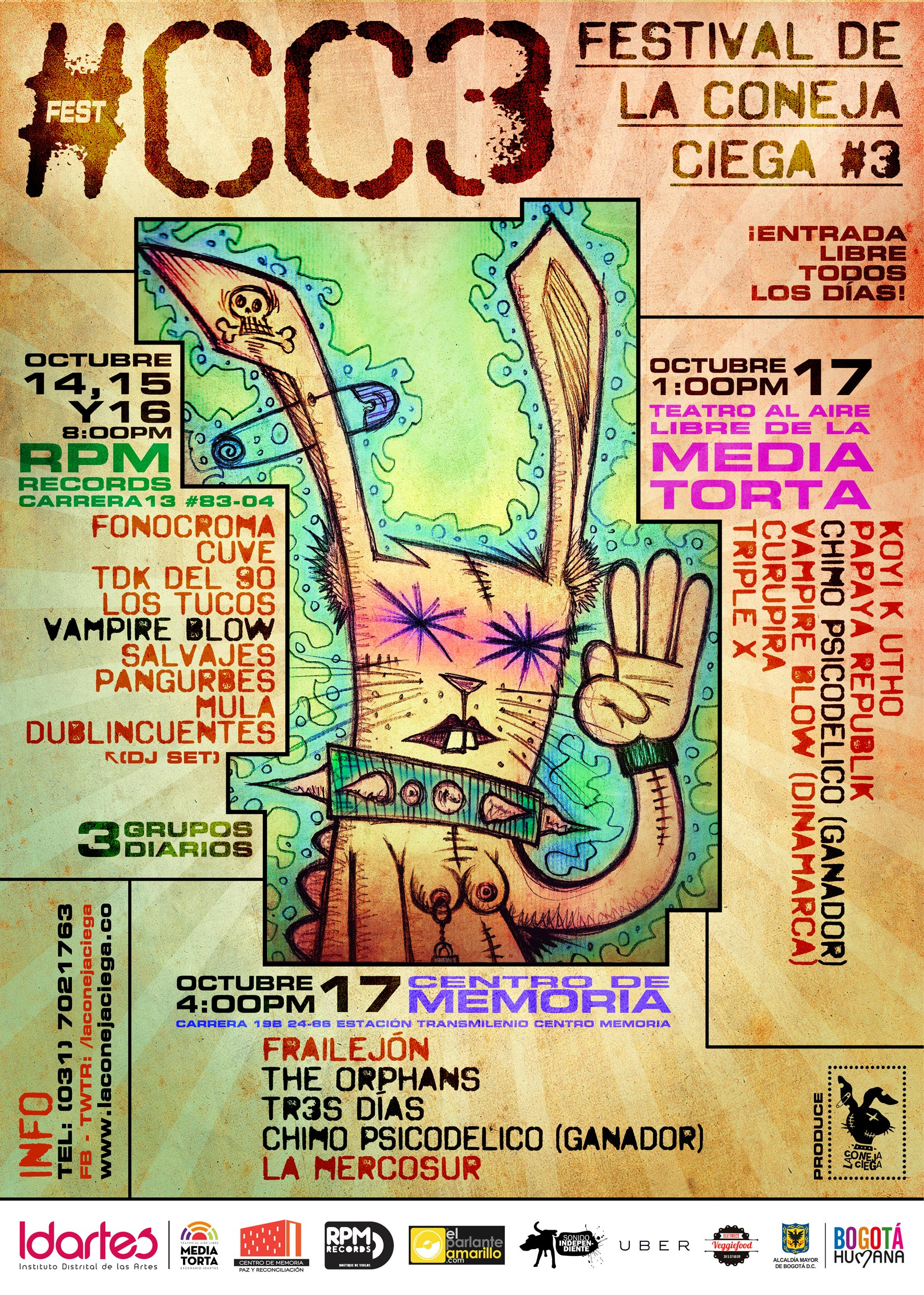 Aparte de promover grupos de la movida bogotana, el festival contará con la participación internacional de la agrupación ‘Vampire Blow’, de visita desde Dinamarca, y se complementa con agrupaciones ganadoras de la convocatoria que La Coneja Ciega abre para promover nuevas bandas del país.En este orden, el Festival contará con la participación de los grupos Triple X, Koyi K-Utho, Papaya Republik 2.0, Curupira, Frailejón (importante grupo de fusión bogotano que se alista para su gira en México) The Orphans, Tres Días (segundo y tercer lugar en la convocatoria que abrió La Coneja Ciega) y el grupo ganador de la convocatoria Chimó Psicodélico (Desde Arauca).